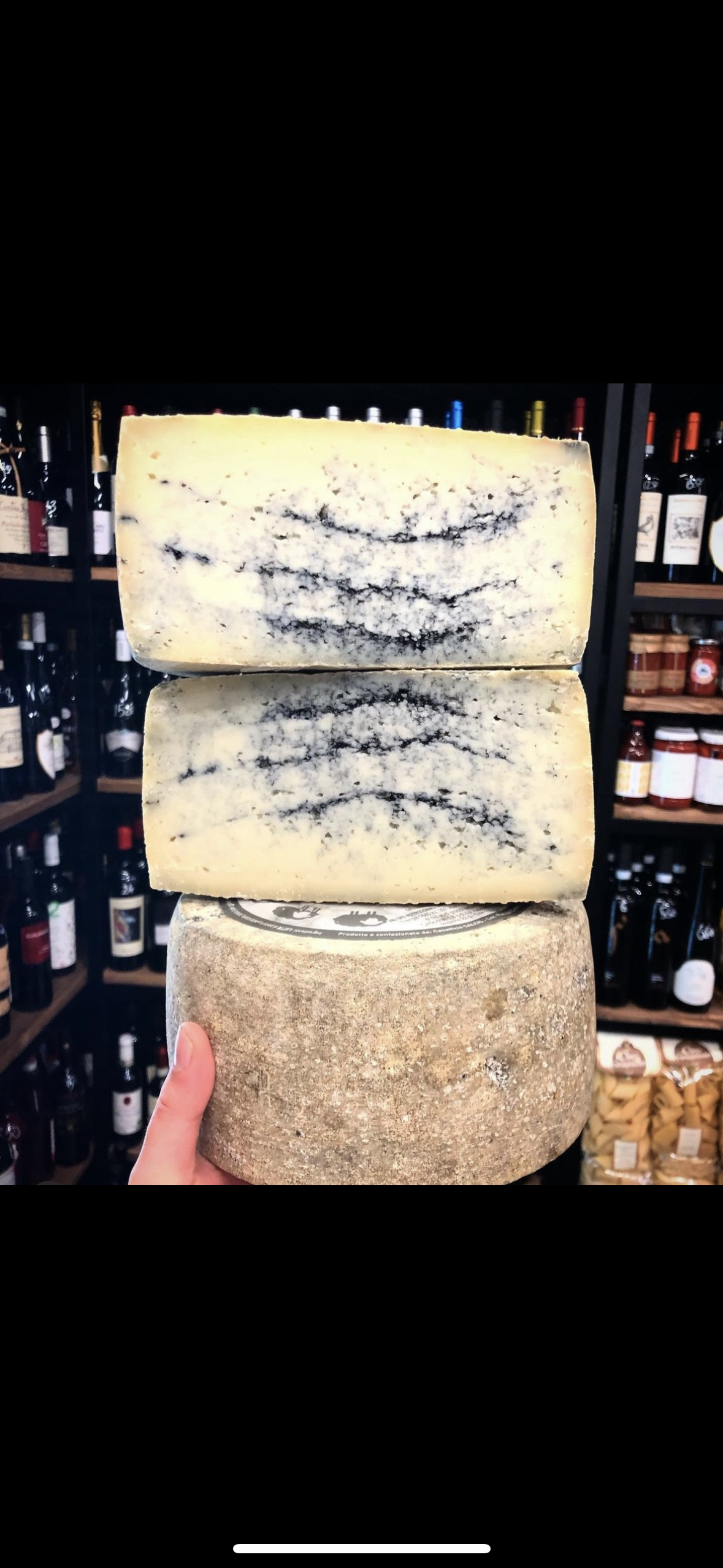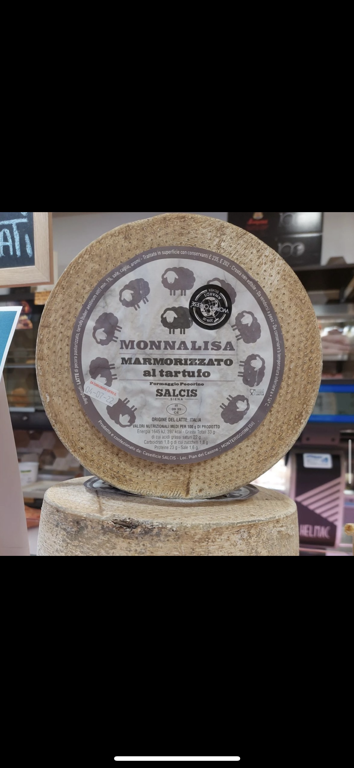Ingredients: pasteurized sheep's milk, truffle (tuber aestivum vitt.) min 1%, salt, rennet, flavourings. Surface treated with preservatives E235, E202. Inedible rind.