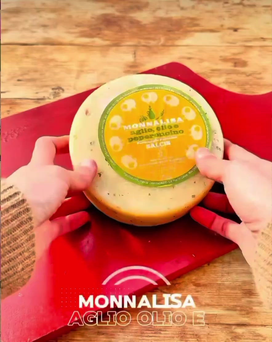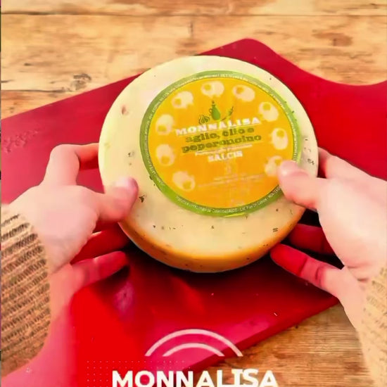 Ingredienti: latte di pecora pastorizzato, peperoncino, aglio, prezzemolo, sale, caglio. Trattato in superficie con conservanti: E235, E202 e olio d’oliva. Crosta non edibile.
