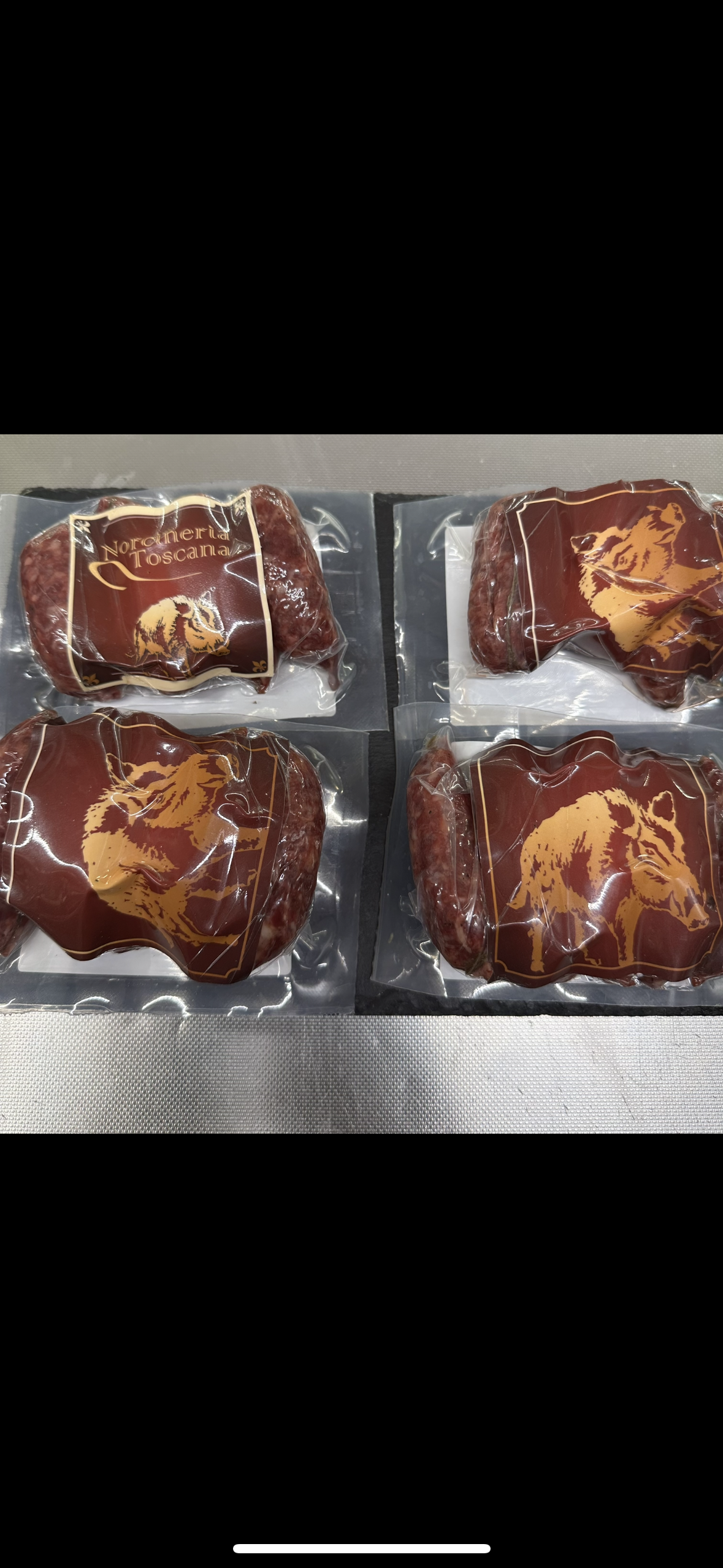 ingredienti: carne di suono Origine: Italia, carne di cinghiale (min.20%), sale,destrosio, saccarosio, aromi, spezie. Conservanti: E252, E250. Antiossidante: E301